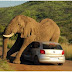 Nah,seekor gajah beralih kepada kereta dengan menggaru belakang dan perutnya untuk melegakan kerengsaannya.